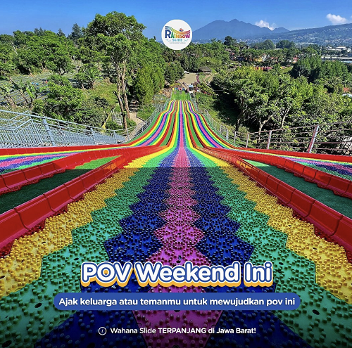 Buat Anda yang berkunjung ke Floating Market Lembang, jangan lupa coba Rainbow Slide, wahana populer yang ada di sana. Perosotan berwarna-warna ini akan memacu adrenalin Anda saat meluncur turun di sepanjang lintasan. Panjang lintasan Rainbow Slide adalah 125 meter dengan tinggi 25 meter. Tidak hanya seru, spot ini juga sangat instagramable lho!