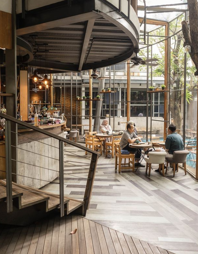 Sedang mencari tempat yang makan untuk makan dan ngobrol, serta punya desain yang instagramable? Jangan lupa mampir ke One Eighty Coffee and Music! Resto ini punya spot unik, yaitu meja dan kursi yang diletakkan di tengah kolam renang. Tempat ini jadi favorit para pengunjung lho! Dekorasi bangunan khas kolonial juga membuat resto ini semakin menarik.