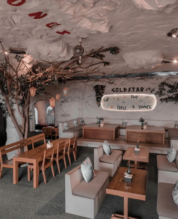 Goldstar 360 punya desain cantik yang bikin Anda betah. Interior dan eksterior tempat ini didominasi oleh batu berwarna putih yang estetik. Cocok nih untuk dijadikan background foto reuni yang Instagramable! Di sini juga ada area rooftop yang terletak di lantai 5 untuk menikmati pemandangan matahari terbenam di sore hari.
