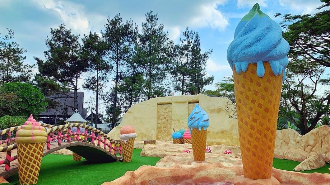 Zona terakhir yang tidak boleh ketinggalan adalah ice cream Park. Sudah pernahkah Anda melihat ice cream raksasa? Jika belum disini Anda akan melihatnya. Selain ice cream raksasa, Anda juga bisa menikmati indahnya lampu hias yang indah dan estetik. Serunya lagi, terdapat salju buatan yang membuat Anda berfantasi seolah-olah sedang berada di negeri dongeng Snow White.
