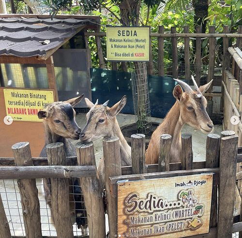 Salah satu hal paling menarik di Imah Djoglo adalah kehadiran mini zoo yang cukup sulit ditemukan di restoran keluarga pada umumnya. Di sini Anda bisa mengajak si kecil berinteraksi langsung dengan hewan ternak, mulai dari ayam hingga kambing. Tidak hanya menyaksikan dari jauh, Anda bisa mengajak anak untuk memberi makan hewan-hewan tersebut secara langsung lho!