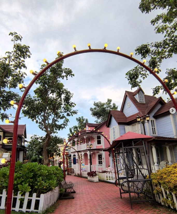 Konsep utama dari kota kecil ini adalah nuansa pedesaan ala Eropa yang begitu estetik. Sudut ini adalah tempat favorit pengunjung untuk berfoto. Perpaduan rumah-rumah dengan arsitektur yang sangat memukau dan taman yang dipenuhi bunga aneka warna terlihat begitu memanjakan mata. Agar vibes Eropa semakin terasa, Anda bisa menyewa kostum tradisional khas Belanda untuk dikenakan saat berfoto.
